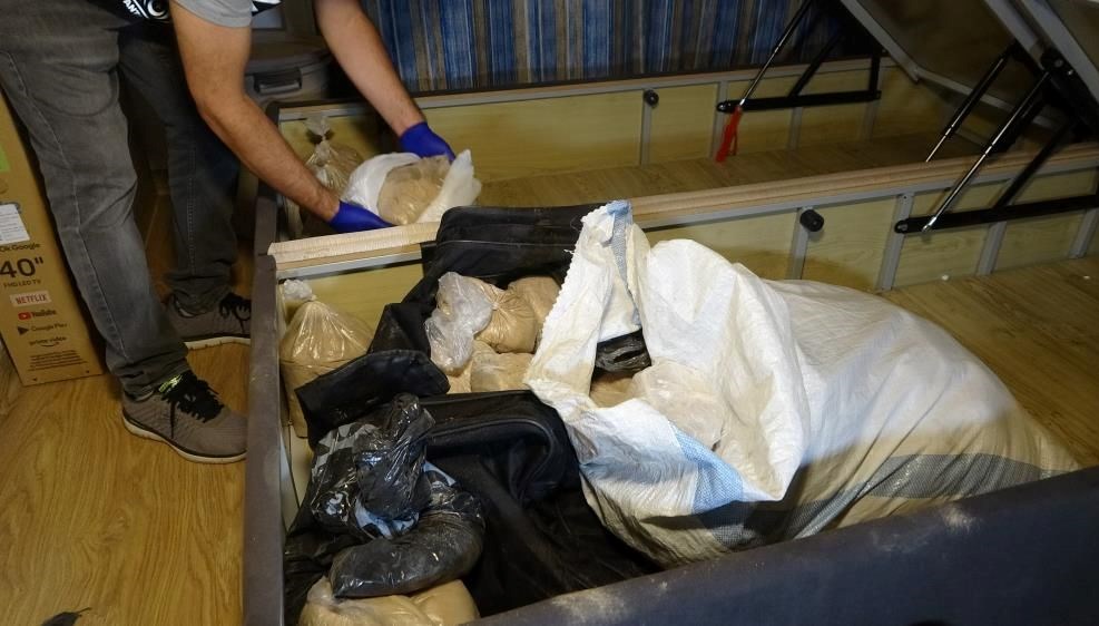 “Tim” ve “Geeta” isimli 2 narkotik köpeğinin de katıldığı operasyon kapsamında konutta yapılan aramada, yatak bazasının altında poşetlere doldurulmuş yaklaşık 50 kilogram eroin ile uyuşturucu unsur üretiminde kullanılan eşyalar ele geçirildi.