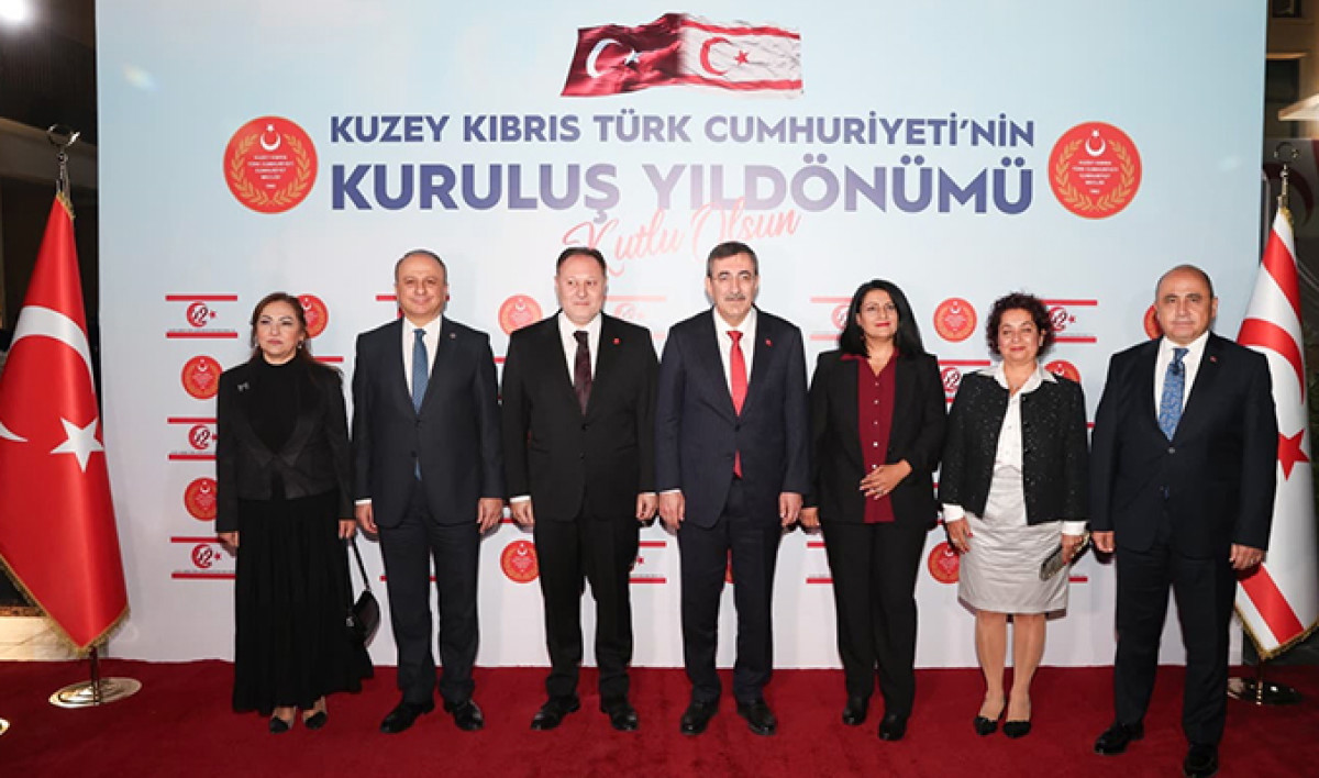 Cumhuriyet Meclisi bahçesinde Cumhuriyet Meclisi Başkanı Ziya Öztürkler’in ev sahipliğinde düzenlenen resepsiyona Cumhurbaşkanı Yardımcısı Cevdet Yılmaz, KKTC Başbakanı Ünal Üstel, TBMM Başkanvekili Celal Adan, CHP Genel Başkanı Özgür Özel, DSP Genel Başkanı Önder Aksakal, AKp Genel Başkanvekili Mustafa Elitaş, Türkiye’nin Lefkoşa Büyükelçisi Ali Murat Başçeri’nin yanı sıra KKTC kabinesinden çok sayıda bakan ile milletvekilleri katıldı.