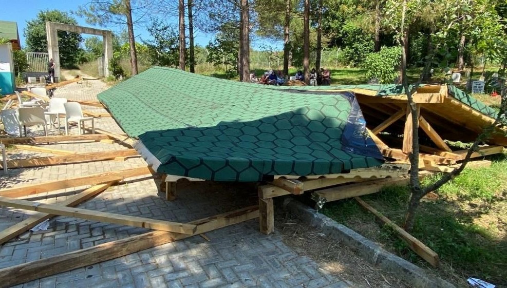 Kocaeli’nin Kandıra ilçesi Akbal Mahallesi’ndeki mezarlıkta bulunan imal evresindeki ahşap çardak çöktü.