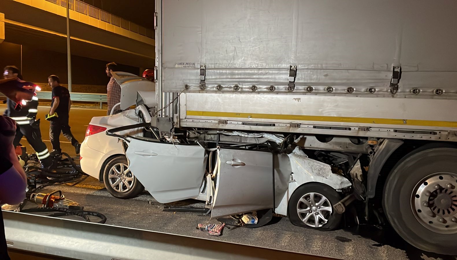 Kazada, araba TIR’ın ardında sıkışarak yaklaşık 50 metre sürüklendi.