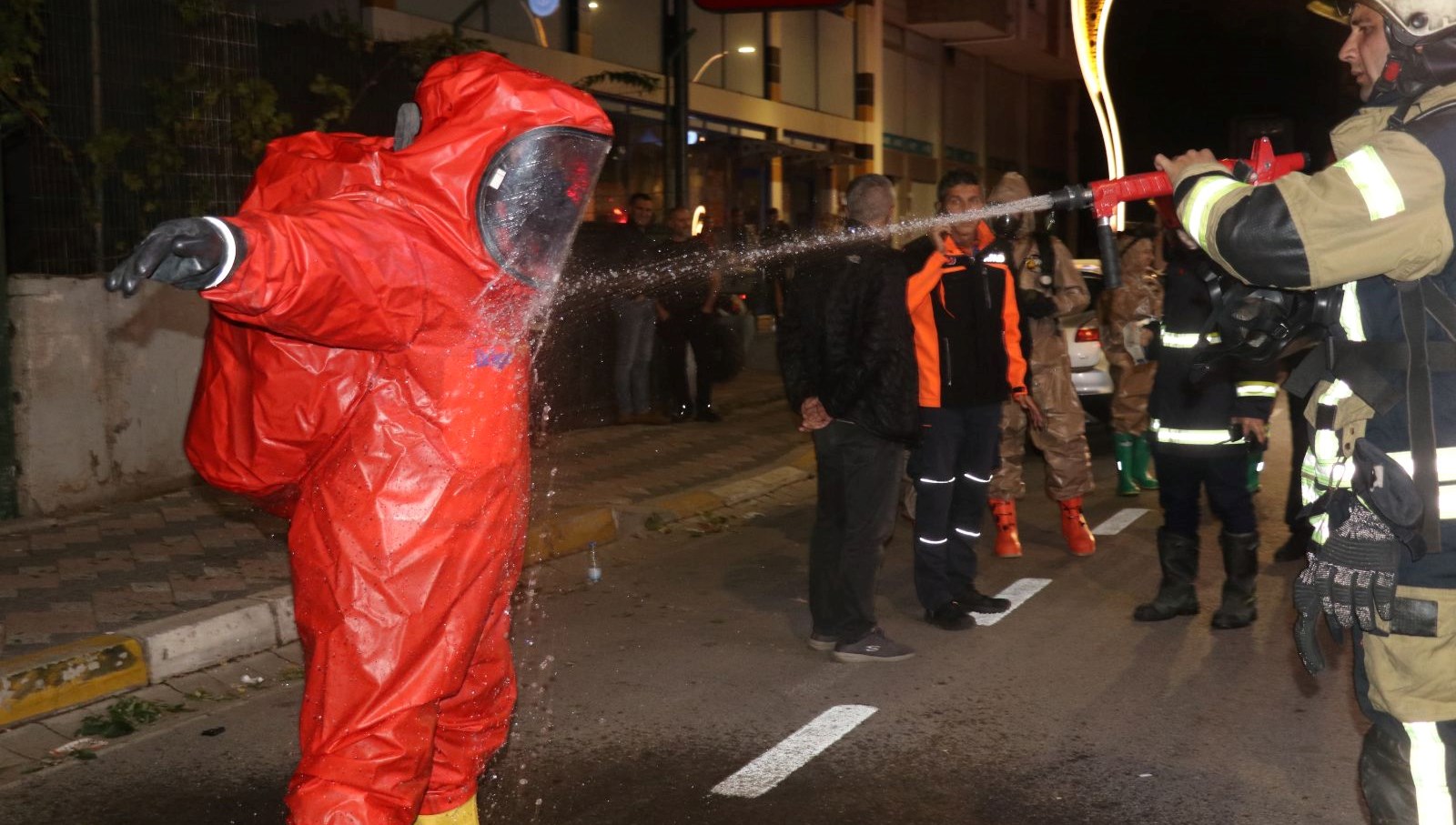 İtfaiye ve AFAD grupları de hami kıyafetler giyerek girdikleri dükkanda inceleme yaptı.