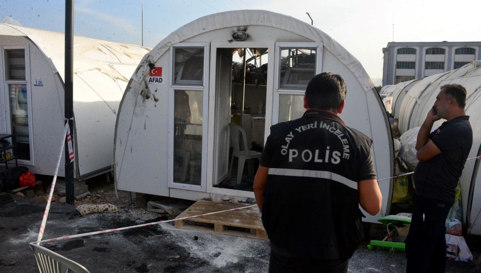 Çetindağlı’nın yanan konteynerde eşi Ayşe Çetindağlı ile kaldığı, olay sırasında bayanın yevmiye ile ekmek yapmak için köye gittiğini, acı haberi burada aldığı öğrenildi. Yangın itfaiye gruplarınca söndürülürken, vinç operatörü gözaltına alındı.