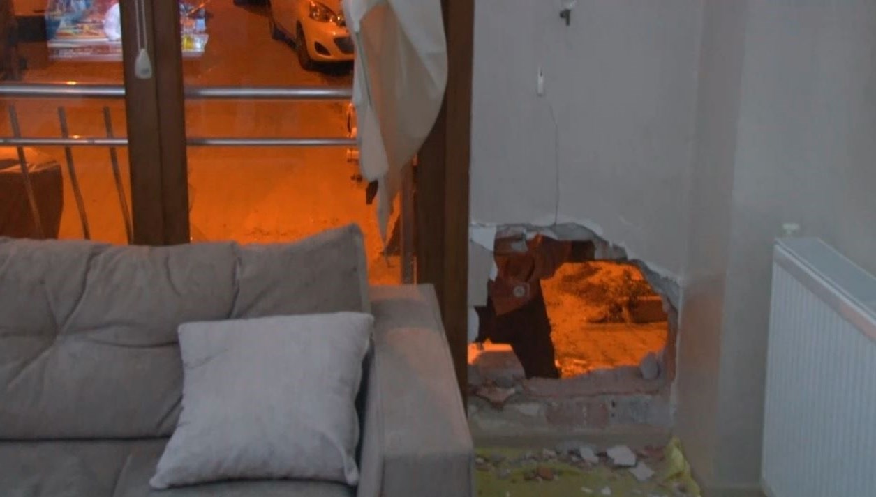 Küçükçekmece Kartaltepe Mahallesi Aydınlar Sokak’ta, teze nazaran yolda çalışma yapan iş makinesinin freni boşaldı. Şoför etrafındaki araçlara çarpmamak için hareket yaptı. Sokaktan aşağıya yanlışsız inen araç, duramayarak 4 katlı bir binanın giriş katındaki konutun salonuna kadar girdi.