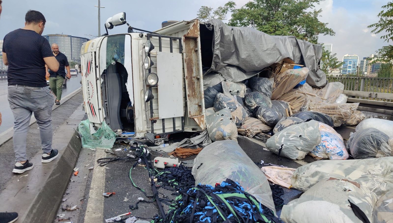 Küçükçekmece’de kamyonet devrildi (Trafikte aksama yaşanıyor)