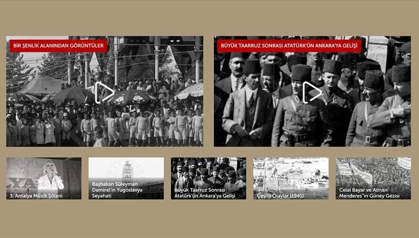 Yurdun düşman işgalinden kurtuluş sürecine ilişkin birçok görüntünün bulunduğu arşivde, Büyük Başkan Mustafa Kemal Atatürk’ün Meclis konuşmaları, yabancı heyetleri kabulü, yurt ziyaretleri ve cenaze merasimine ait manzaralara de yer veriliyor.
