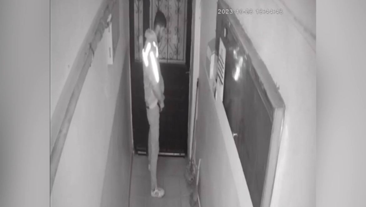 Güvenlik kamerası imajlarını izleyen apartman sakinleri, bir daire sipariş getiren kuryenin girişe idrarını yaptığını gördü.