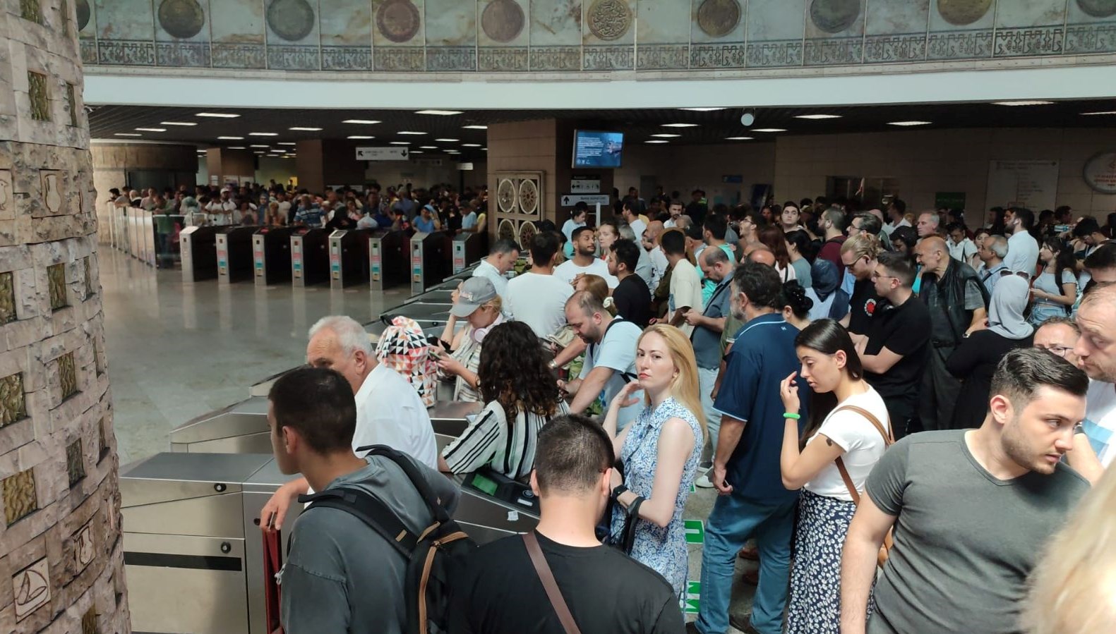 Marmaray Yenikapı istasyonundan yolcu alımı durdurulduğu için yoğunluk oluştu.