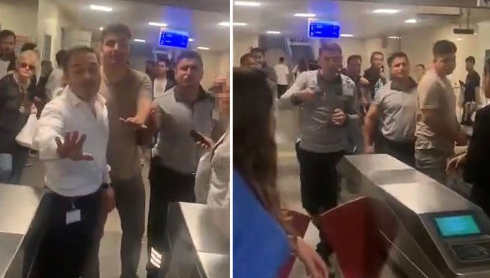 Marmaray’a köpeği ile binmek isteyen bayan şahıs, turnikelerden geçiş yapacağı esnada güvenlik işçisi tarafından durduruldu.