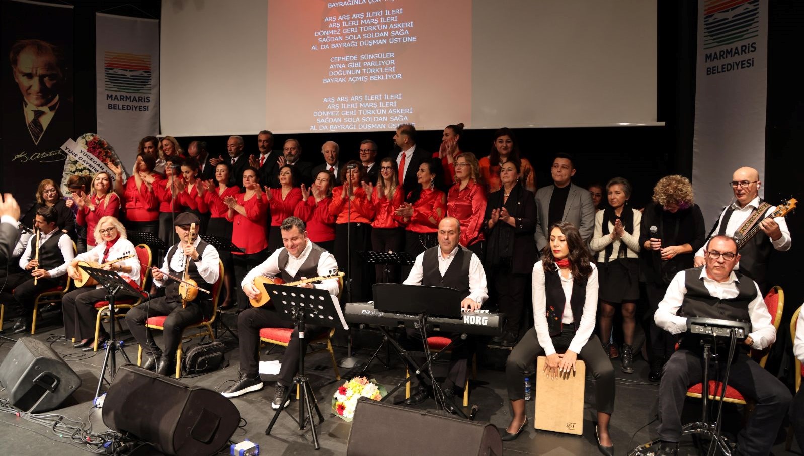 Ege Türküleri ve Zeybekler 100. Yıl Özel Konseri Armutalan Kültür Merkezi’nde ağır bir iştirakle düzenlendi. Şef Yavuz Özkaran idaresinde sahne alan Marmaris Türk Halk Müziği ve Folklor Derneği korosu birbirinden hoş türküler seslendirdi.
