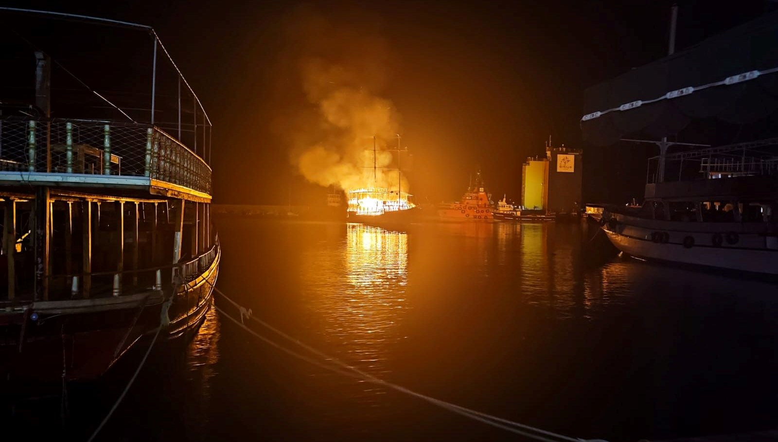 Mersin’in Silifke ilçesinde, yangın çıkan 26 metrelik yat battı.