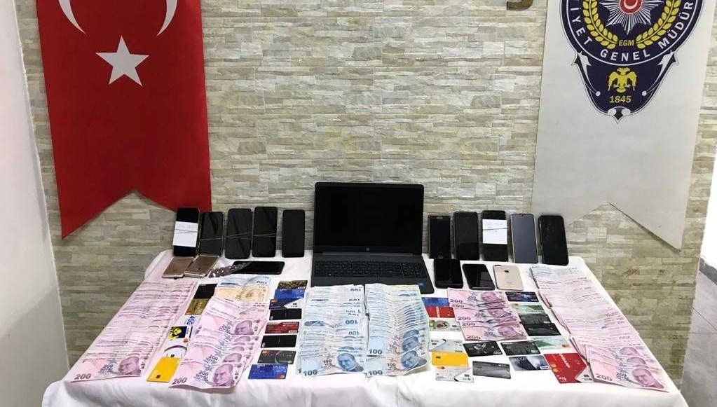 İkametlerde, 62 banka kartı, 80 bin lira, 25 telefon, dizüstü bilgisayar ve bir ölçü sentetik ecza ele geçirildi.