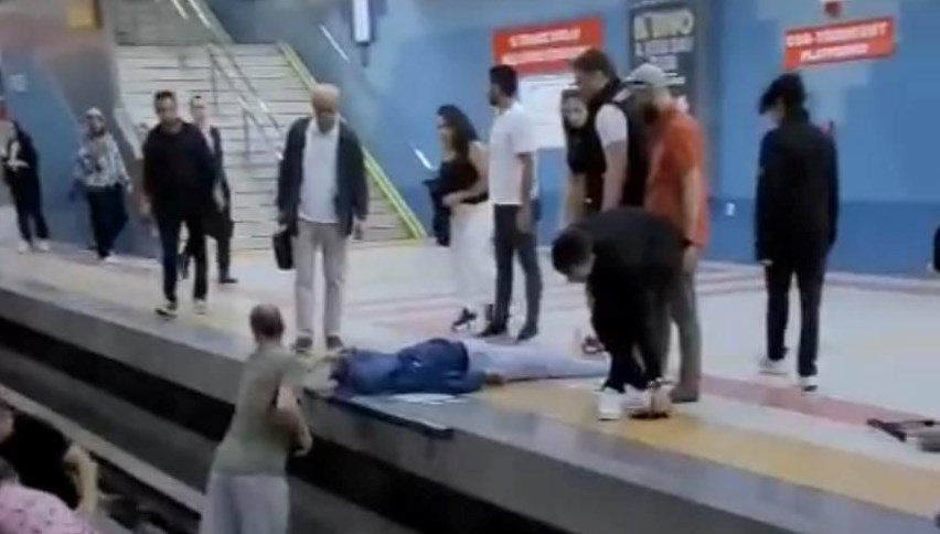 İ.G. isimli bayan istasyondaki öbür yolcuların yardımıyla kurtarıldı.
