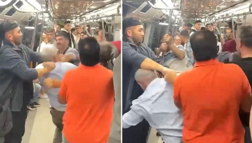 Ardından iki kişi tekme ve yumruklarla birbirine girdi. Arbedeyi gören öteki arkadaşları ve yolcular da olaya dahil olunca metro bir anda boks ringine döndü.