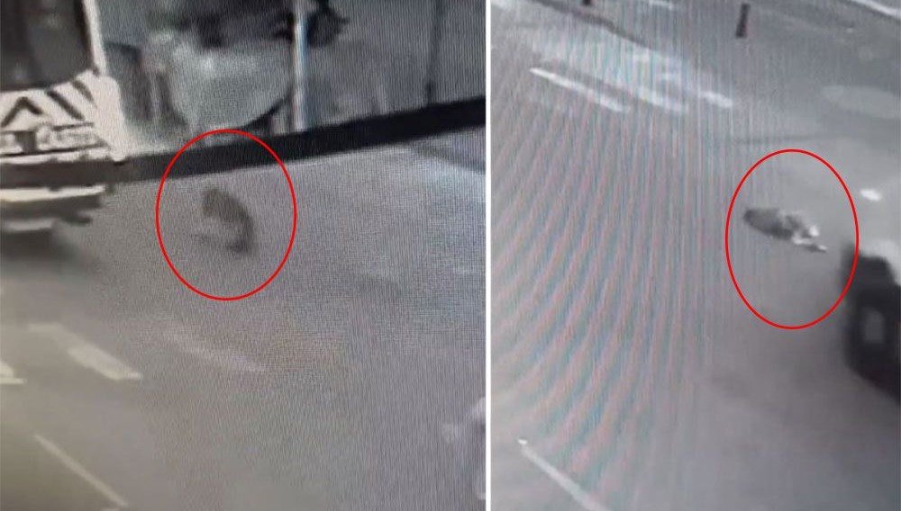 İstanbul Büyükçekmece’de minibüsün sahipsiz köpeği ezmesi güvenlik kameraları tarafından kaydedildi.
