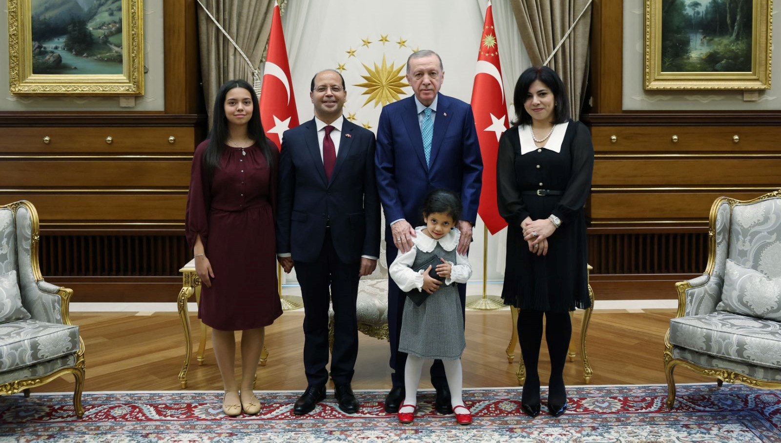 Hamami’nin ailesi ve kimi büyükelçilik mensuplarını Cumhurbaşkanı Erdoğan’a takdiminin akabinde hatıra fotoğrafı çektirildi.