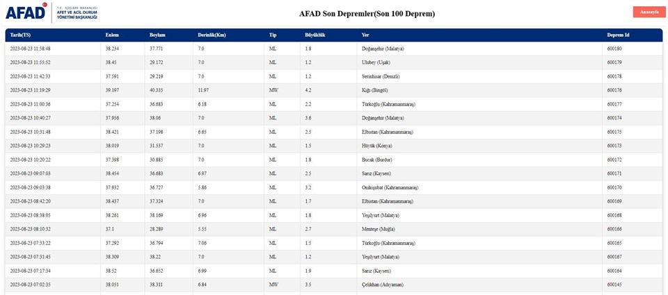 Türkiye’nin farklı noktalarından zelzele haberleri gelmeye devam ediyor. Afet ve Acil Durum İdaresi Başkanlığı (AFAD) tarafından son sarsıntılar listesi anlık olarak güncellenmeye devam ediyor. Oturdukları kentlerde meydana gelen sarsıntılardan ötürü zelzele sorgulaması yapan vatandaşlar, 23 Ağustos tarihli son sarsıntılar listesini araştırıyor.