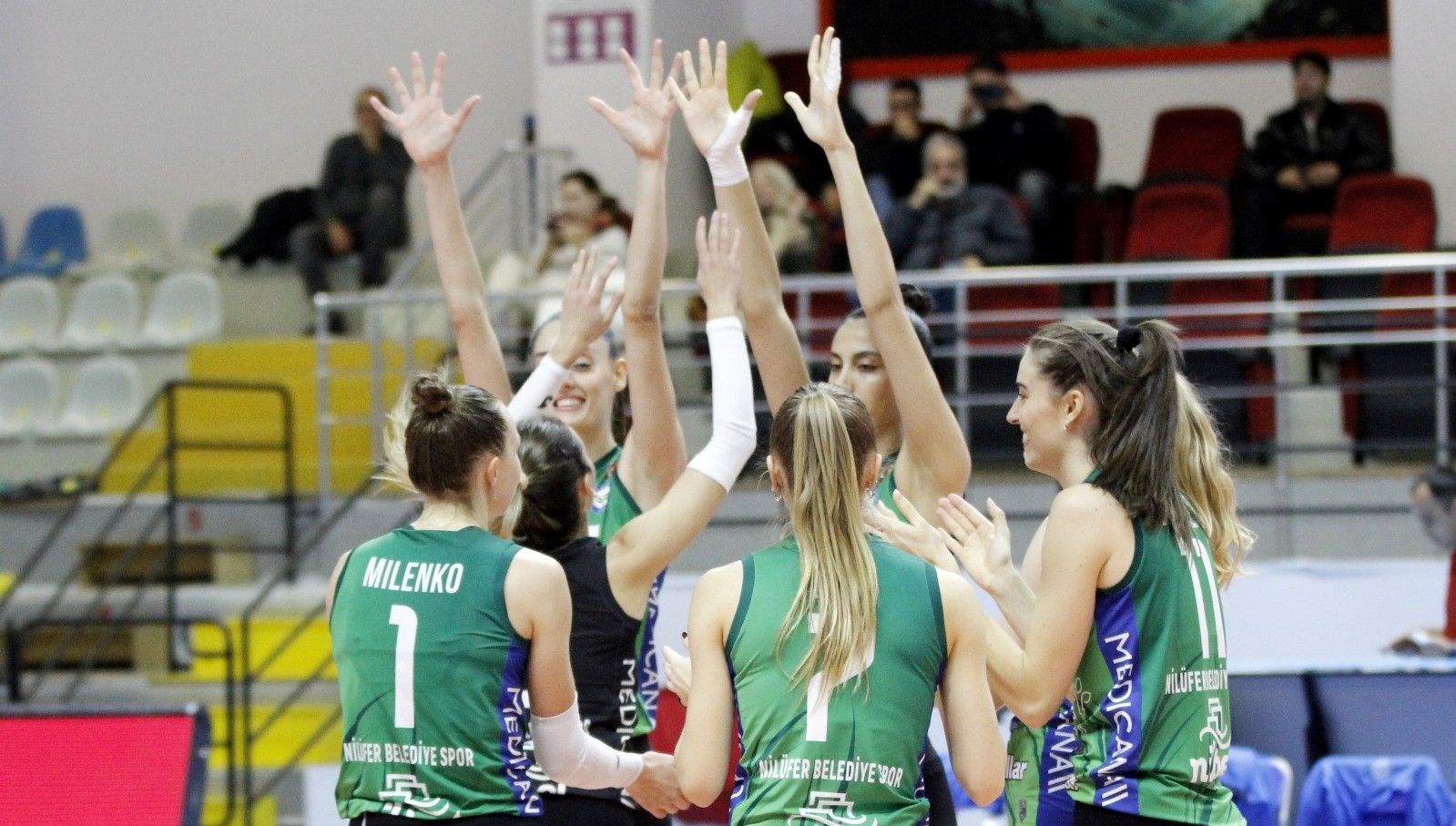 Nilüferli voleybolcular Ankara grubunu Cengiz Göllü Voleybol Salonu’nda ağırladı. Müsabaka boyunca üstün bir oyun sergileyen Nilüfer’in sultanları 25-16,25-13 ve 25-18’lik açık farklı set sonuçları ile rakibini zorlanmadan karşılaşmayı kazanarak, 5 haftalık galibiyet hasretine son verdi.