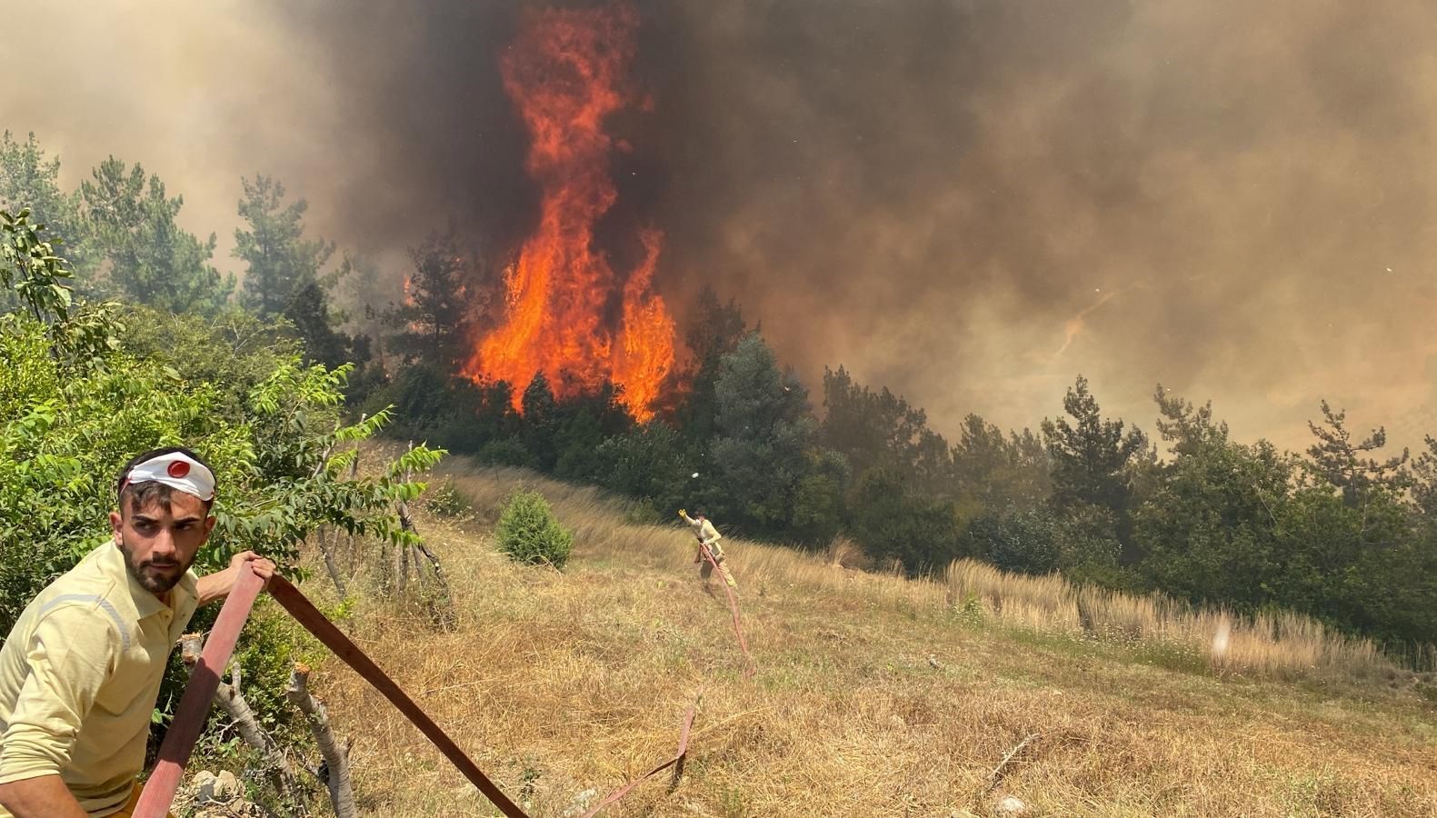 Ekiplerin yangına havadan ve karadan müdahalesi devam ediyor.