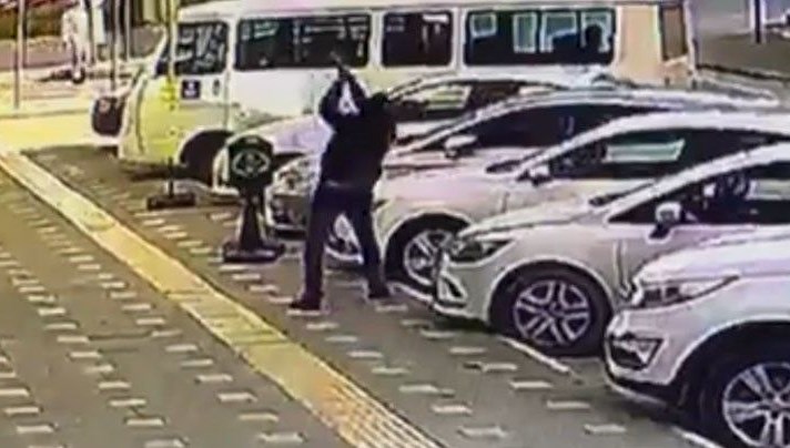 Elindeki balta ile yolda yürüyen 33 yaşındaki A.G., etraftakilere küfür ve hakaret yağdırdı. A.G., daha sonra elindeki balta ile park halindeki araçlara vurmaya başladı.
