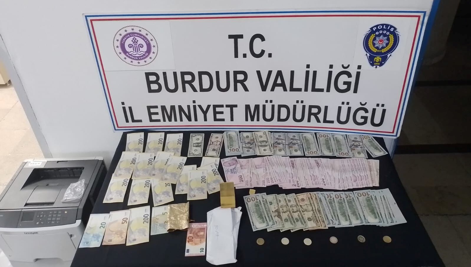 Şüphelinin konutunda yapılan aramada paralar ve altınlar ele geçirildi.