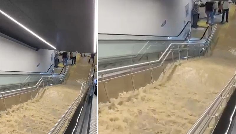 Metro istasyonu, biriken su nedeniyle vatandaşların girişine kapatıldı.