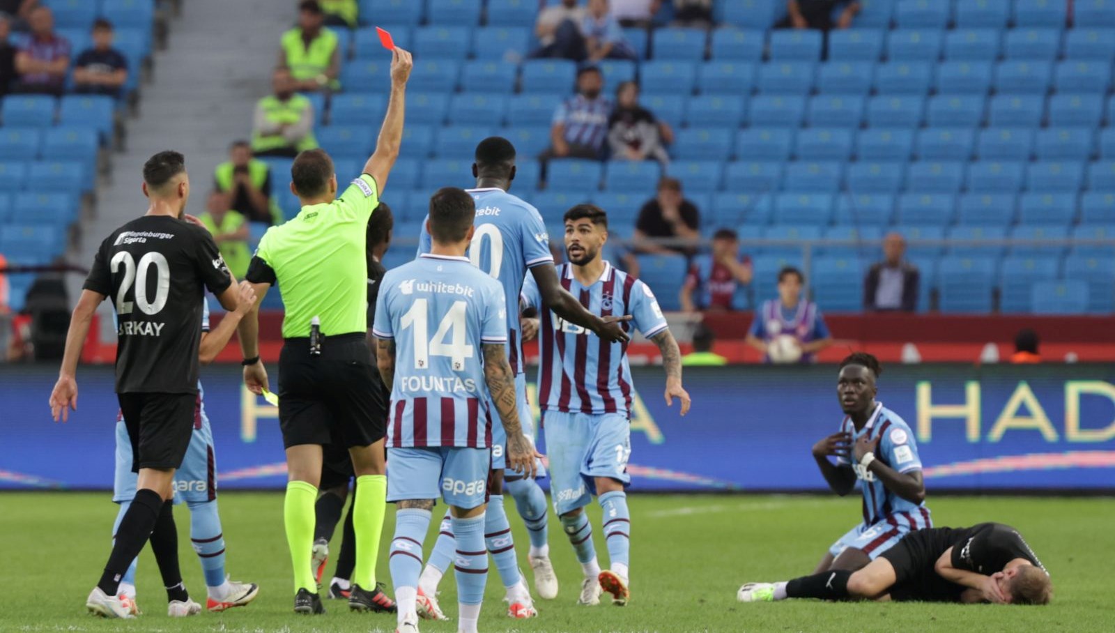 Türkiye Futbol Federasyonu (TFF) Profesyonel Futbol Disiplin Heyeti (PFDK), Trabzonspor’un Pendikspor maçında ikinci sarı kartın akabinde kırmızı kart gören Batista Mendy’nin cezasına yaptığı itiraz talebini reddetti.