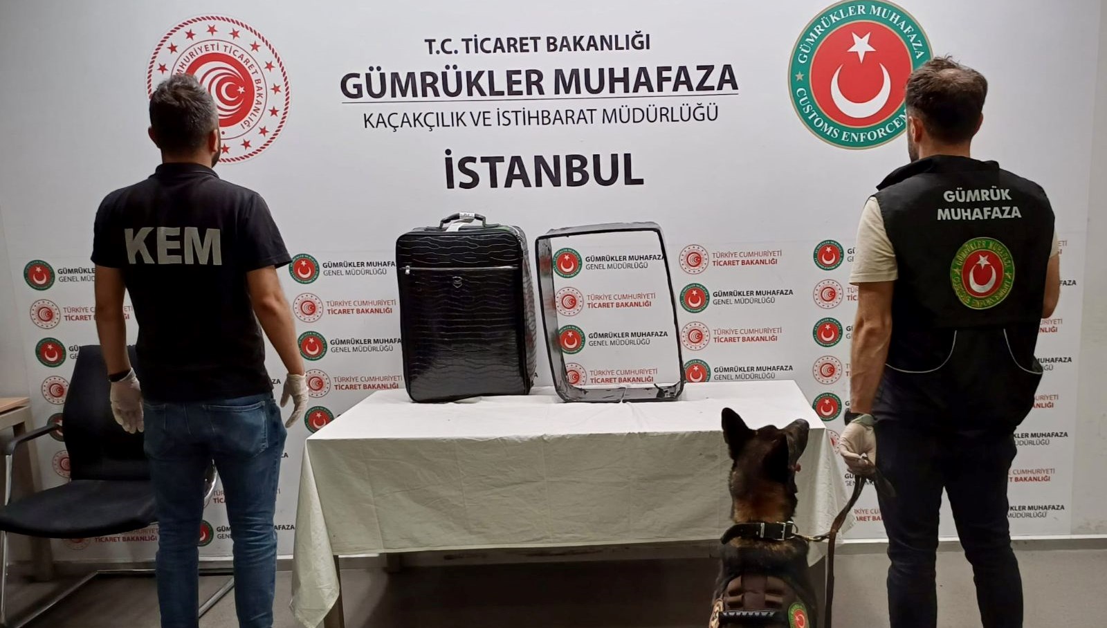 Yapılan aramada, köpeğin reaksiyon vermesi üzerine valizler, X-Ray tarama aygıtından geçirildi.
