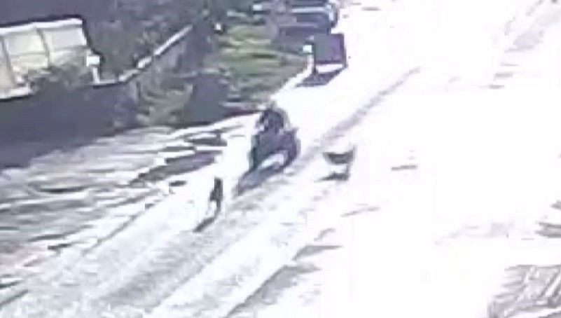 Köpeklerin saldırması ve kaza anı ise bir iş yerinin güvenlik kamerasına yansıdı.