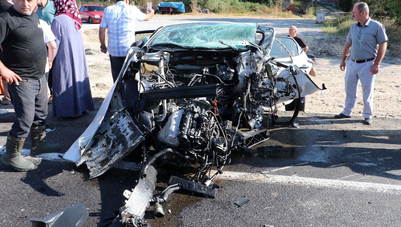 Ender Tütüncü’nün (42) kullandığı araba, karşı istikametten gelen Ayhan Eğilmez idaresindeki arabayla çarpıştı.