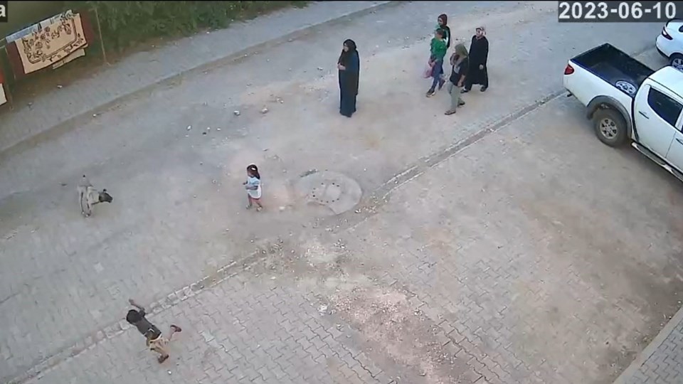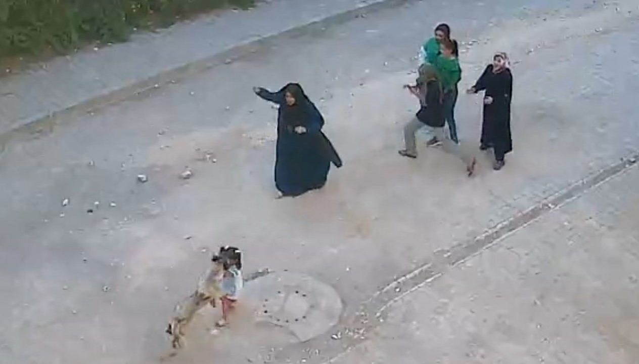 Çığlıklar atan kız çocuğu yüzünden yaralandı. Çocuğun yakınları taş atarak köpeği uzaklaştırdı.