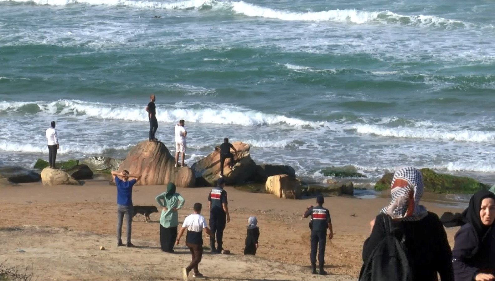 Bu sırada Berat Keskin (14) bir anda dalgalara kapıldı. Arkadaşları yardıma koştu lakin Keskin bir anda dalgaların ortasında gözden kayboldu. Haber verilmesi üzerine olay yerine Kıyı Güvenlik dalgıçları, jandarma ve sıhhat takımları sevk edildi.