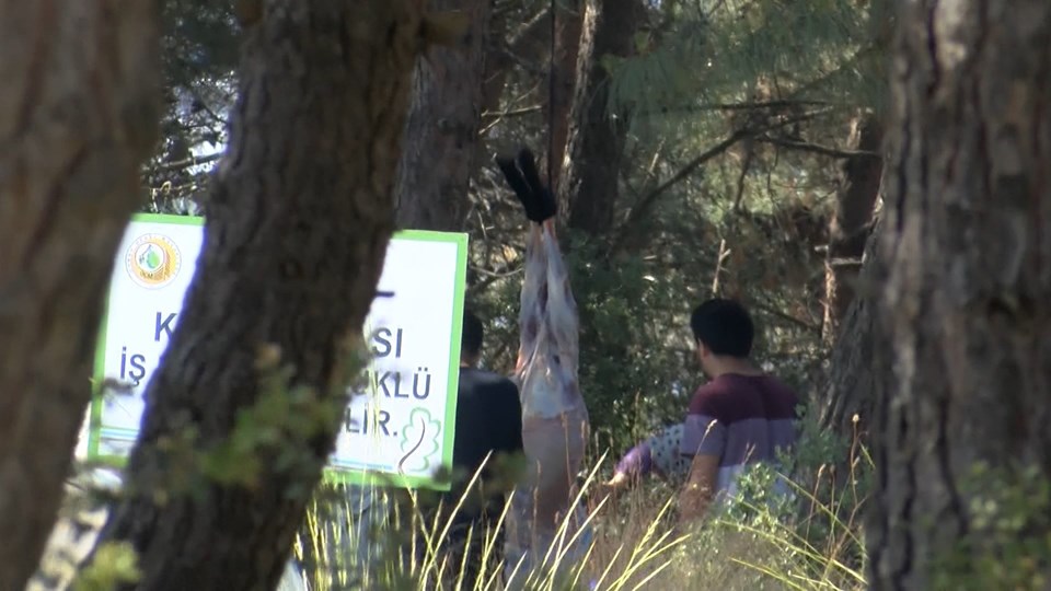 Ayazağa’da kimi vatandaşlar belediye takımlarının oluşturduğu kurban kesim alanlarını gitmeyerek kurbanlıklarını ormanda kesti.