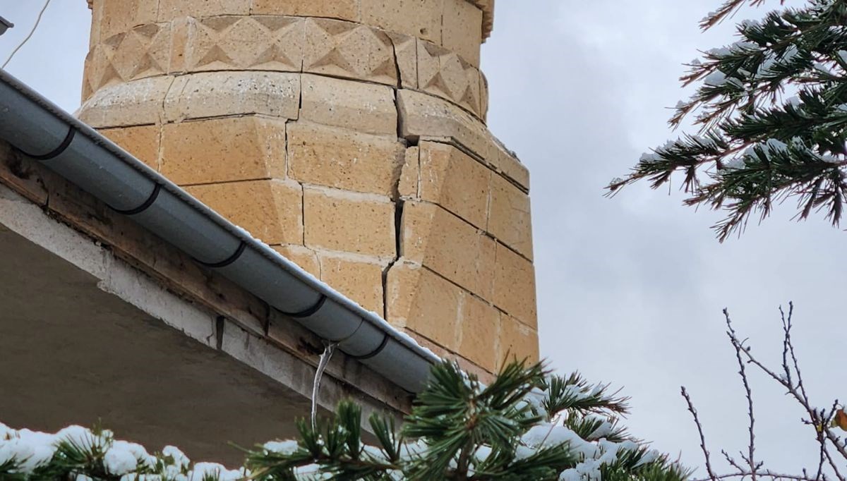 Ağaçören ilçesinde dün saatteki suratı 70 kilometreyi bulan rüzgarın akabinde Ahırlı Köyü Camisi’nin minaresinde çatlaklar meydana geldi.
