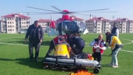 Hastanede birinci tedavisi yapılan Y.D’nin Sivas’a sevk edilmesi için 112 Acil Davet Merkezinden ambulans helikopter talep edildi.