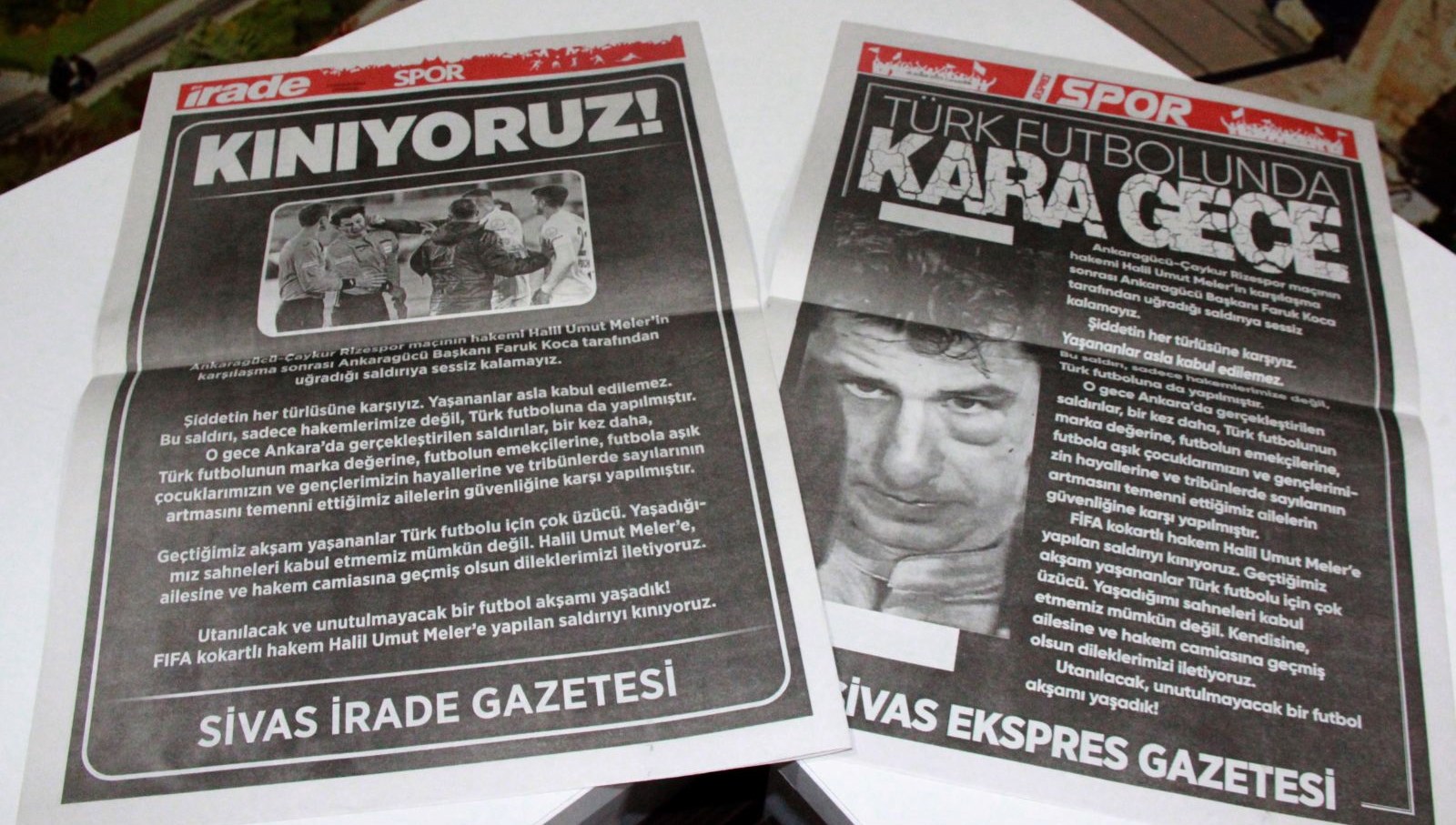 Sivas Ekspres Gazetesi ise, ‘Türk futbolunda kara gece! Yaşananlar asla kabul edilemez’ başlığını kullandı.