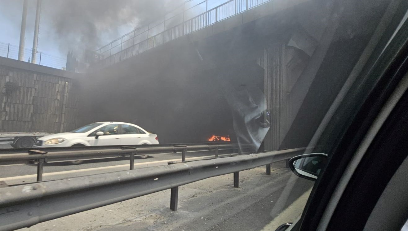 SON DAKİKA HABERİ: İstanbul’da TEM otoyolunda araç yangını