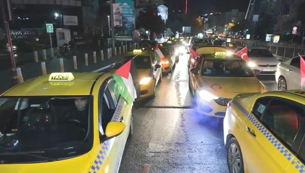 Şişli’de toplanan yüzlerce taksici, Filistin’e takviye gayesiyle araçlarıyla konvoy oluşturarak İsrail’i protesto etti. Hareket etmeden evvel Büyükdere Caddesi’nde toplanan taksiciler, ellerinde Türk ve Filistin bayrakları ile İstiklal Marşı okuyup hürmet duruşunda bulunduktan sonra hayatını kaybedenler için dua ettiler.