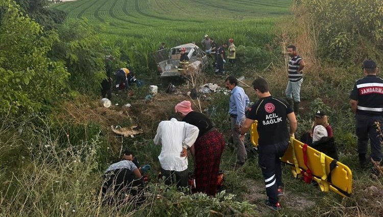 Araçtaki tarım emekçilerinin, kırsal Tophisar Mahallesi’ne gitmek üzere Karacabey ilçe merkezinden yola çıktıkları öğrenildi.
