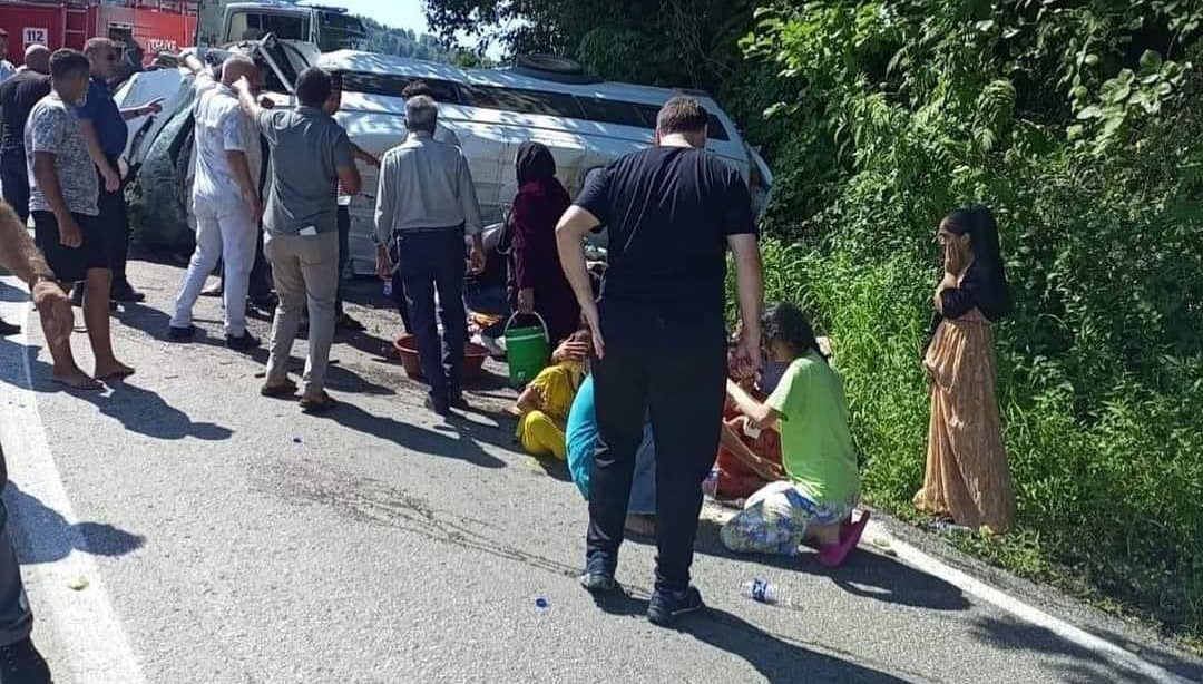 Ordu’nun Çamaş ilçesinde mevsimlik tarım personellerini taşıyan minibüs, arabayla baş başa çarpıştı.