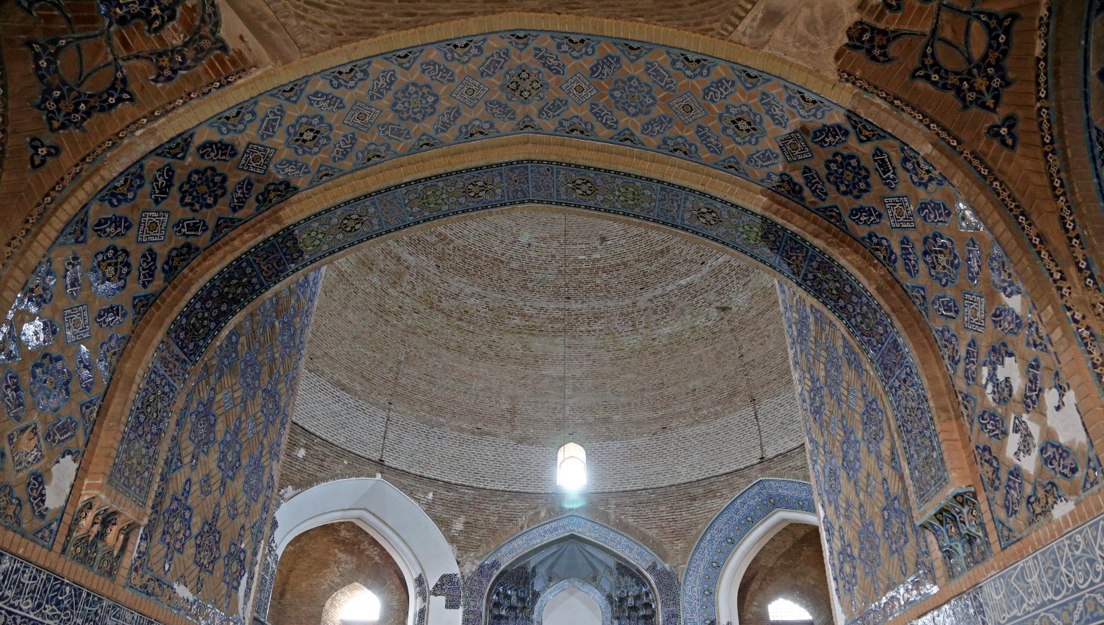 İran merkezinin işlek bir noktasında yer almasına karşın dışarıdan pek aşikâr olmayan Gök Mescid, kıble istikametindeki kerpiç duvarı ayıran kapısından içeri girince ziyaretçilerini geniş bir bahçe içerisinde kendine has duvar ve kubbe yapısıyla karşılıyor. Çeşitli periyotlarda onarım gören Gök Mescid’in duvarları birinci günkü zarafetinden uzak olsa da şahit olarak bırakılan kısımlardaki ince personellik çabucak dikkatleri çekiyor.