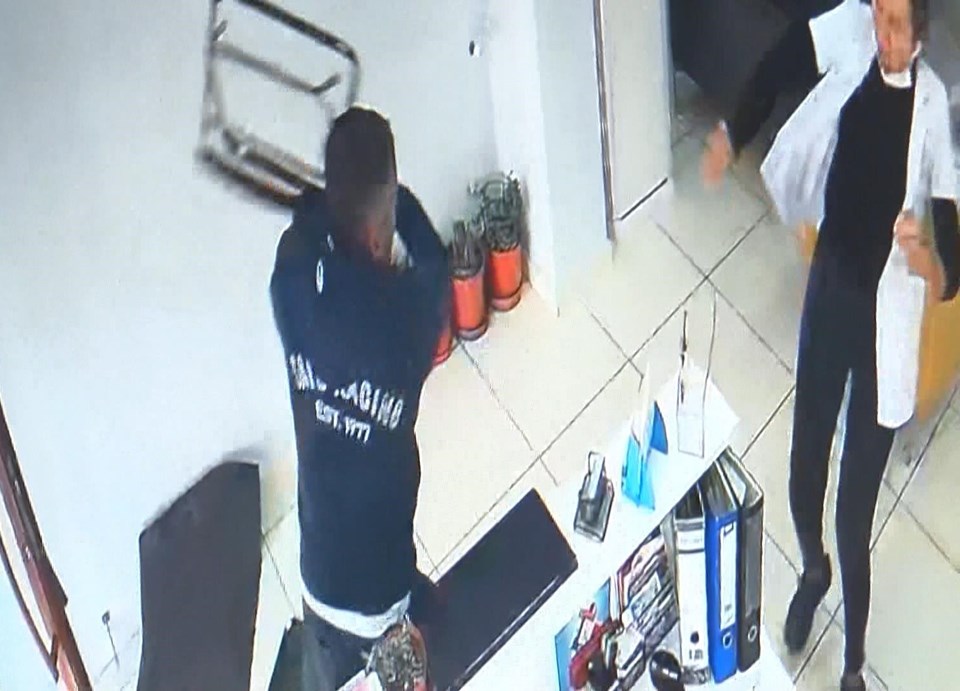 Saldırganın klinikte sandalyeyle eşyalara ziyan vermesi, diş doktoru Pelin Can’ı ayağından yaralaması ve klinikten ayrılma anları iş yerinin güvenlik kamerasına yansıdı. Bir mühlet sonra olay yerine gelen polis grupları güvenlik kameralarını inceleyerek saldırganın eşgalini belirledi.