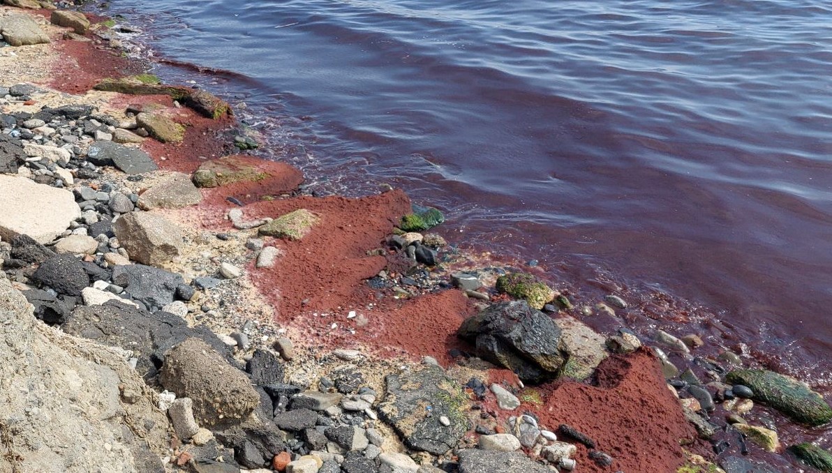 Marmara Denizi’nin Tekirdağ kıyıları kırmızı yosunla kaplandı.