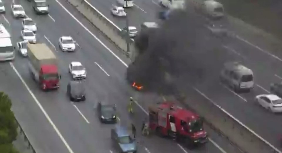 Öte yandan itfaiye takımları soğutma çalışması yaparken, otoyolda uzun araç kuyrukları oluştu. Aracın şoförünün ise kayıplara karıştığı öğrenildi.