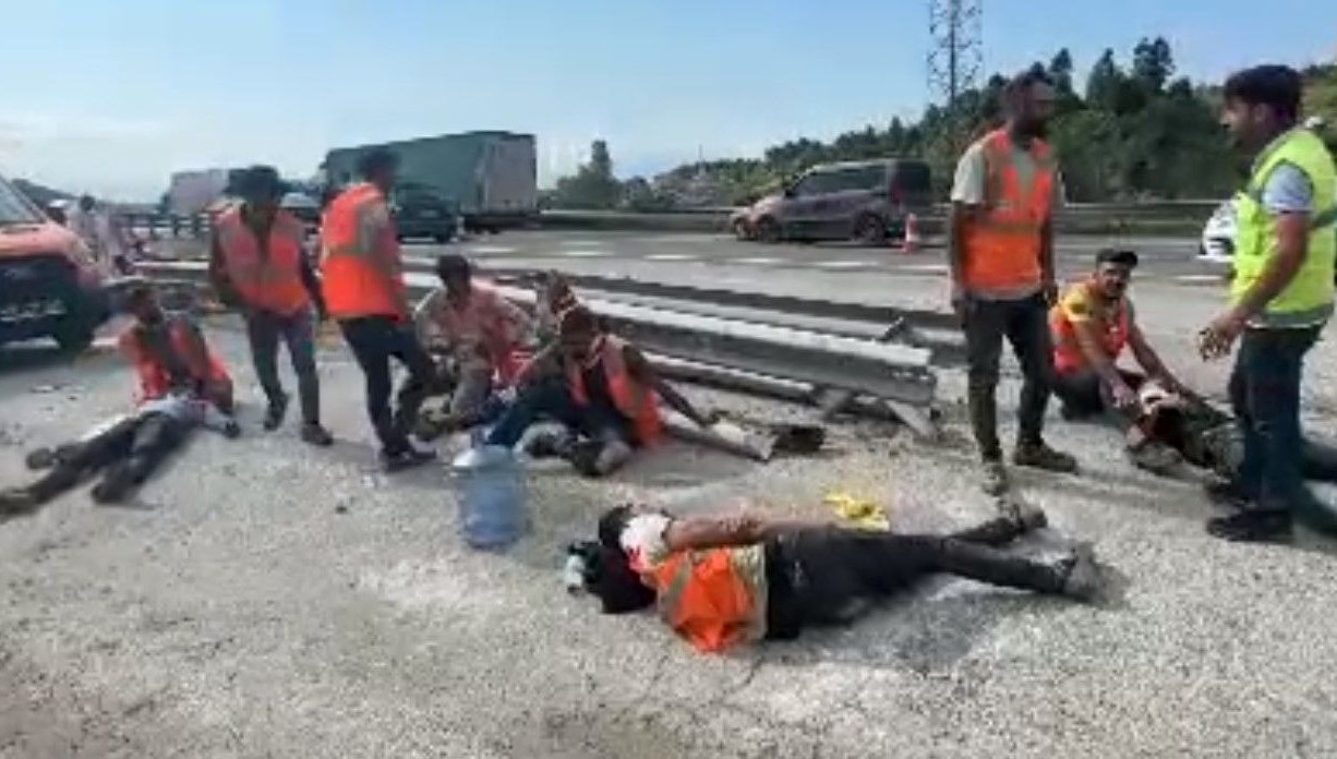 Kazada hafif formda yaralanan bir Karayolları işçisinin de, arabadaki yaralı çocuğu kucağına alarak, ambulansa taşıdığı görüldü.