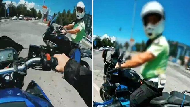 Atakum ilçesinde uygulama sırasında Samsun Emniyet Müdürlüğü Trafik Denetleme Şube Müdürlüğünde misyonlu Yıldırım’ın aracı süratli kullanmaması istikametinde nasihatte bulunduğu motosikletli genç, bu anları kask kamerasıyla kaydetti.