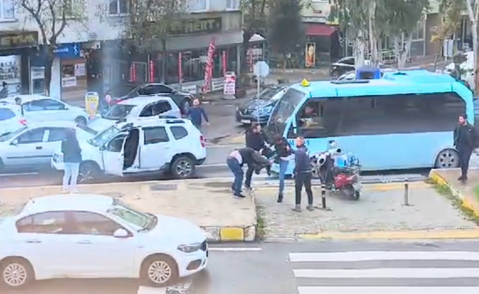 Kavga vatandaşların ortaya girmesiyle sona ererken o anlar cep telefonu kamerasına yansıdı.