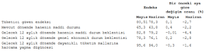 Gelecek 12 aylık dönemde dayanıklı tüketim mallarına harcama yapma düşüncesi endeksi ise mayısta 95,6 iken haziranda yüzde 1,6 azalarak 94’e düştü.