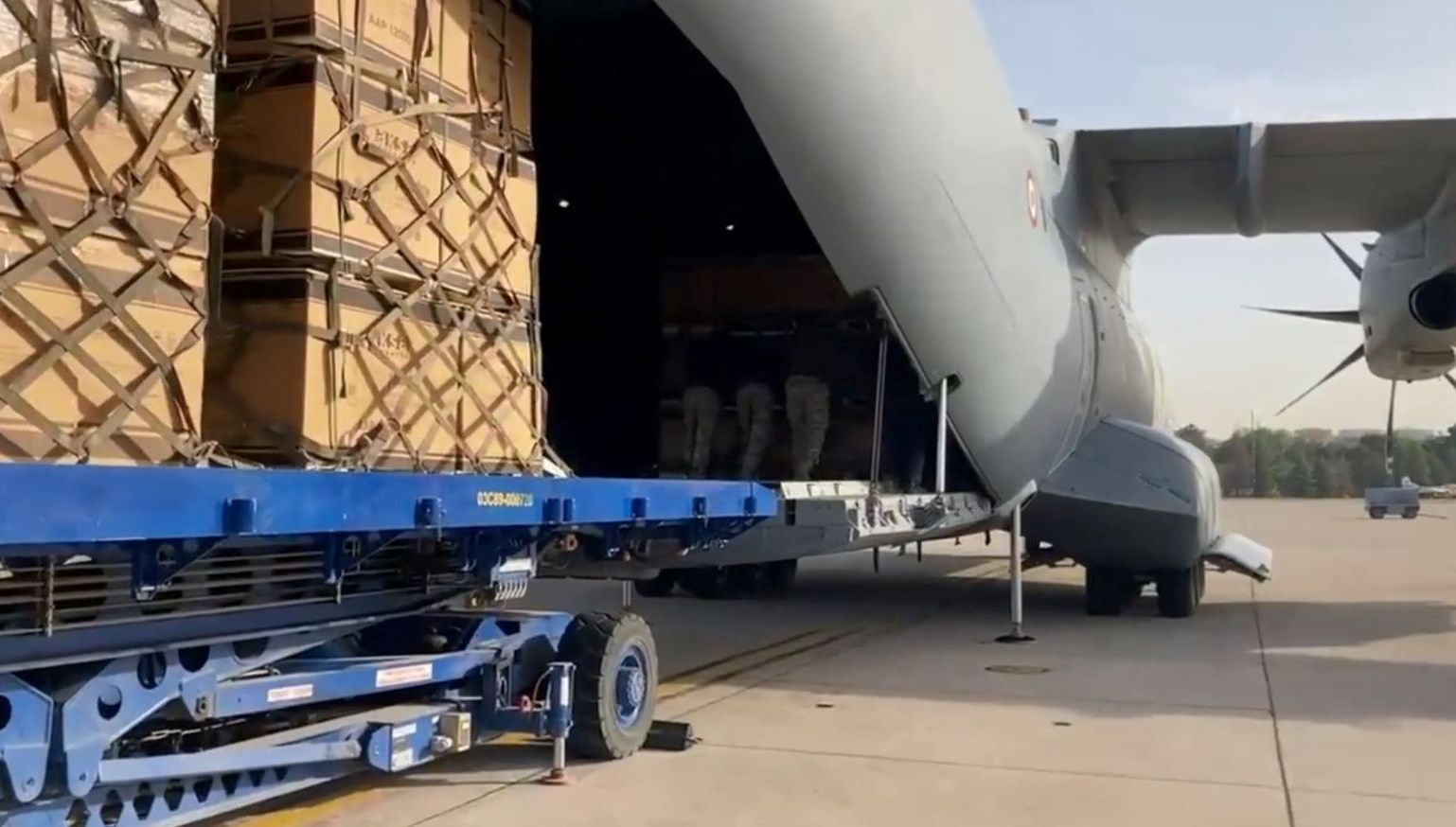 Çoğunluğu tıbbi yardımlardan oluşan insani yardım materyallerini taşıyan 1 A400M tipi askeri kargo uçağı daha bu sabah saatlerinde Etimesgut ilçesindeki 11’inci Hava Ulaştırma Ana Üs Komutanlığı’ndan hareket etti.