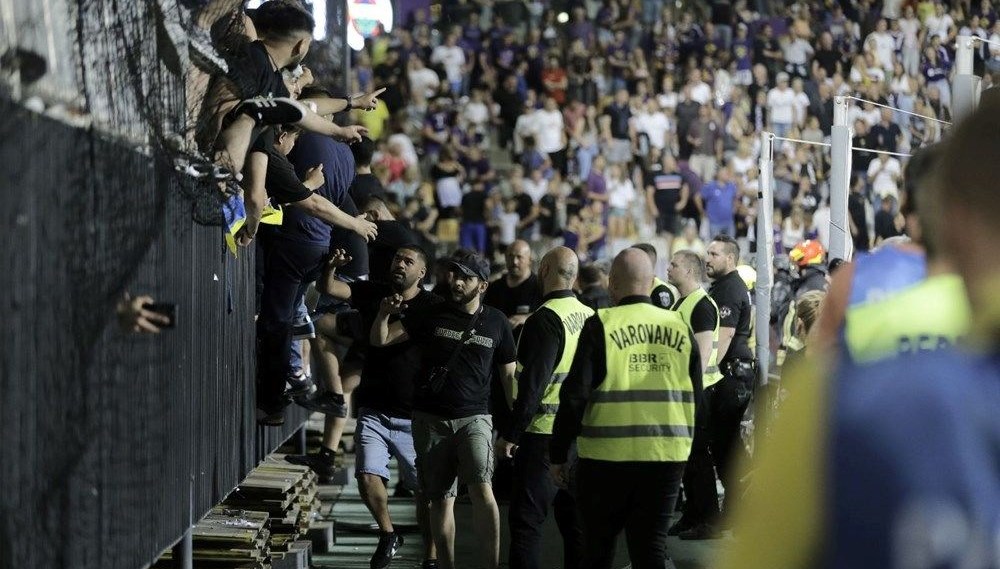 UEFA Konferans Ligi 3. ön eleme çeşidi rövanş maçında Fenerbahçe, Maribor deplasmanında alana çıktı. Gayret 1-0 sarı-lacivertliler’in üstünlüğü ile devam ederken 66’ncı dakikada Maribor taraftarları hareketlendi. Fenerbahçe tribününe yönelen Slovenler, taraftarların pankartını evvel kesmek istedi sonra indirmeye çalıştı.