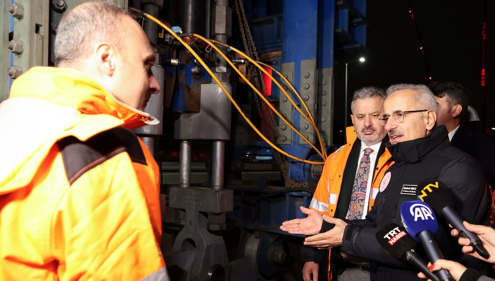 Ulaştırma ve Altyapı Bakanı Abdulkadir Uraloğlu, konuşmasının akabinde emekçilerin yanına geçerek çalışmaları hakkında bilgi aldı.